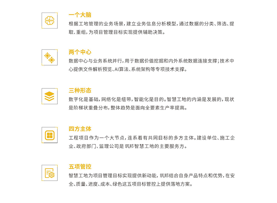 【筑邦鸿昇】智慧工地管理系统平台围绕工地现场人、机、料、法、环五大生产要素,综合运用“BIM、AI、机器人、边缘计算、无人机、5G、XR、区块链”八大信息技术,通过数字化、网络化、智能化实现项目全局优化,保障工程质量、安全、进度、成本等管理目标的顺利实现,助力您的项目成为智慧文明安全工地,在省优市优文明工地评选中占据优势。