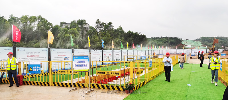 4、工程新技术新工艺应用。GRF装配式护坡工艺、拉森钢板桩工艺、安全防护工具化、360度高压雾桩喷淋系统和微顶管工艺展示。