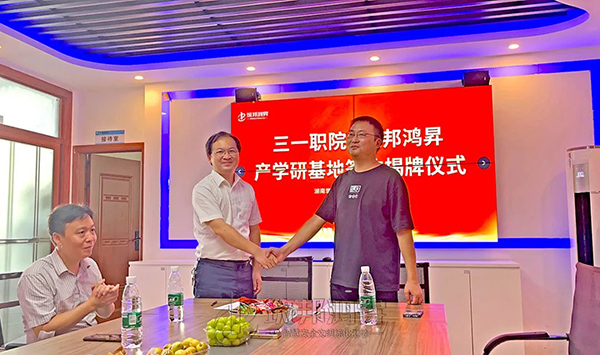 8月23日上午,筑邦鸿昇与三一职院共同举行了产学研基地签约揭牌仪式,三一职院校外实习实训基地正式落户筑邦鸿昇。双方将就智能工程机械运用技术和研发、人才实习实训等方面开展深度合作。