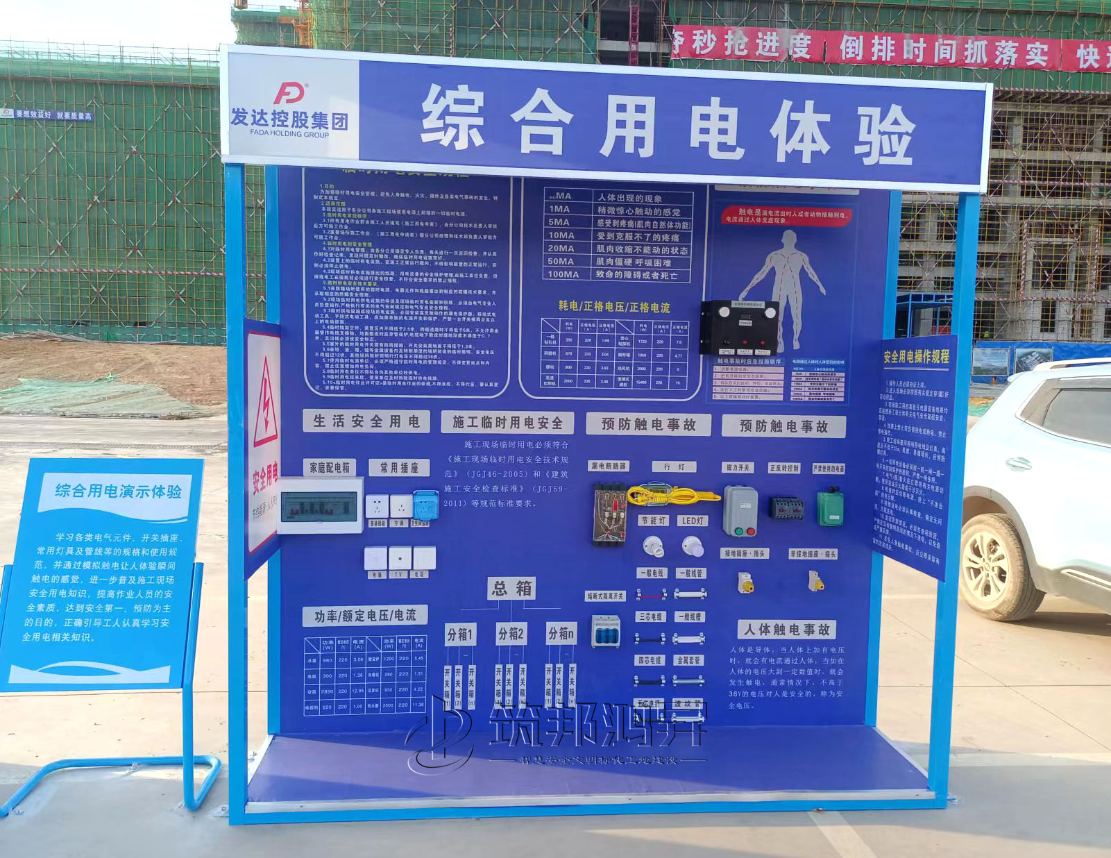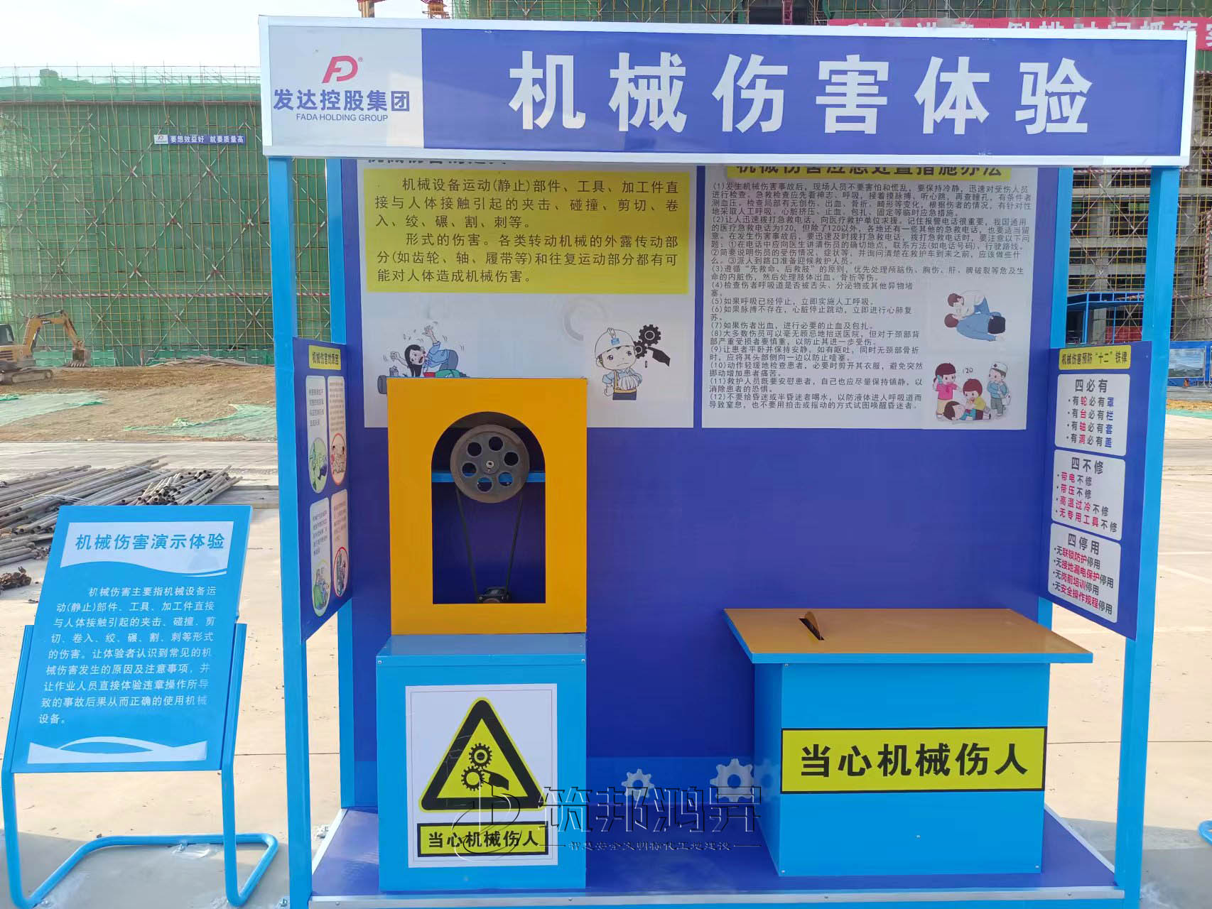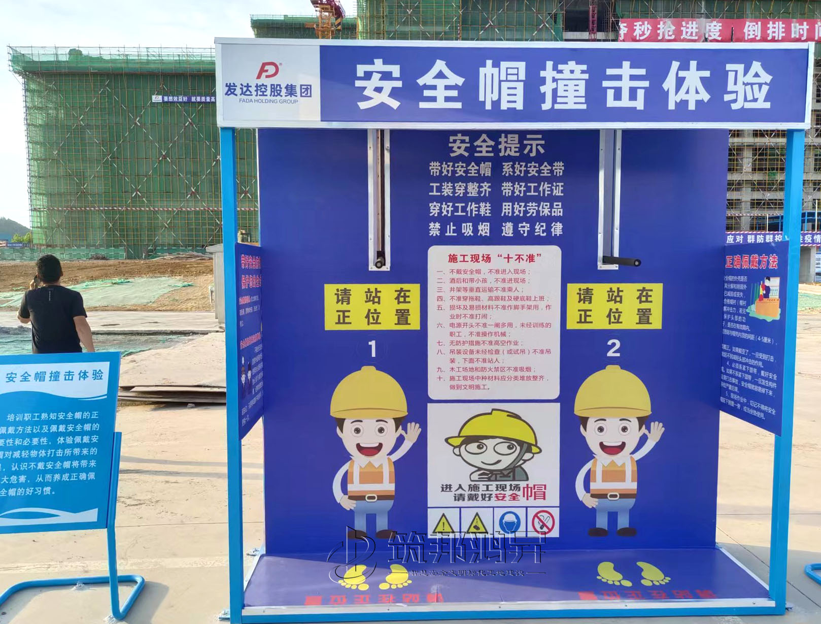 近日,发达控股集团在江西景德镇承建的项目工地与筑邦鸿昇合作,采购了十几项安全体验设备和安全标化产品,用于产业工业的施工安全教育与培训。安装完验收后,该项目的相关负责人在现场十分满意。