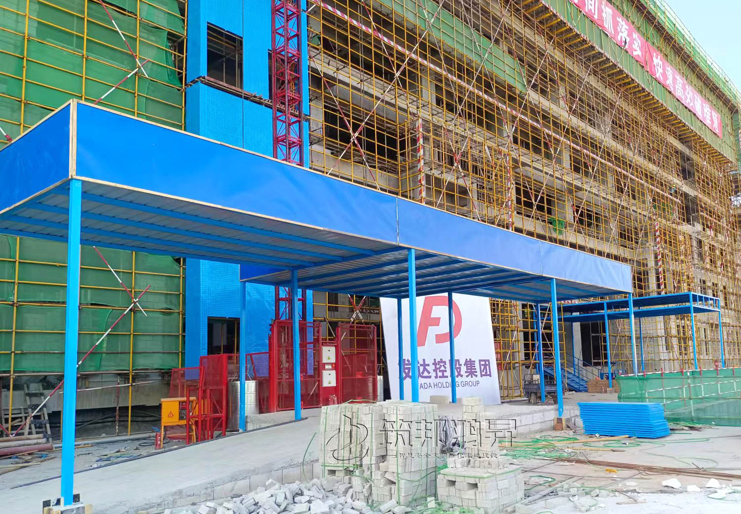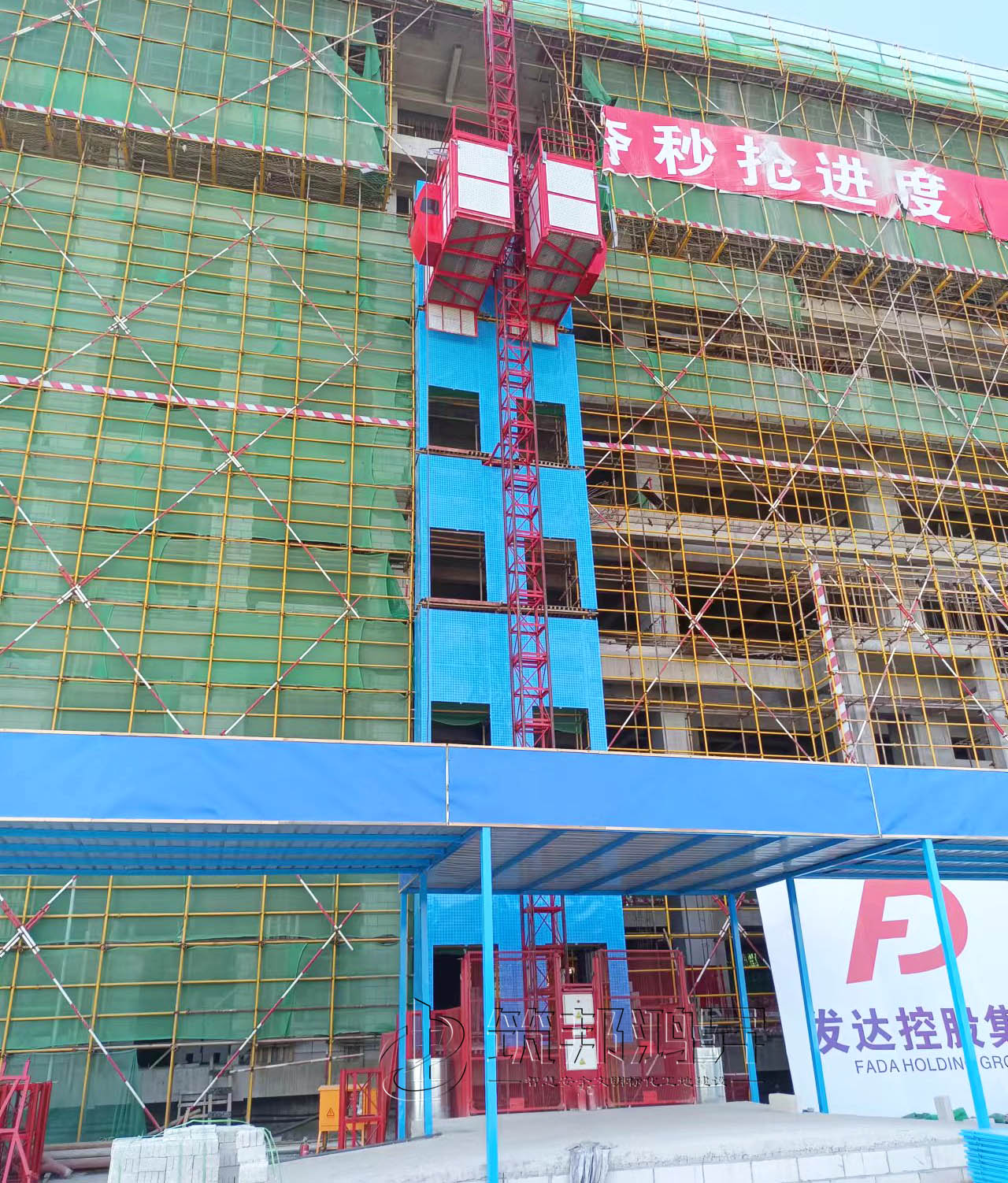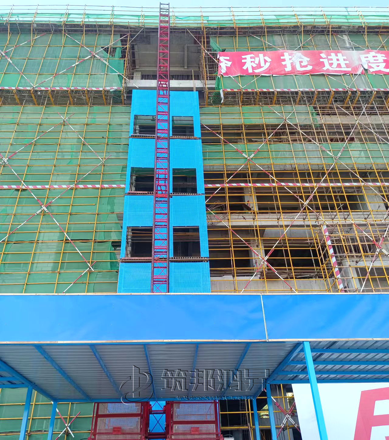 此次合作的安全标化产品还包括了楼层防护门、人货电梯防护棚等设备。筑邦安排专车送货到江西工地,同时安排了专业人手迅速到工地加班加点完成安装。