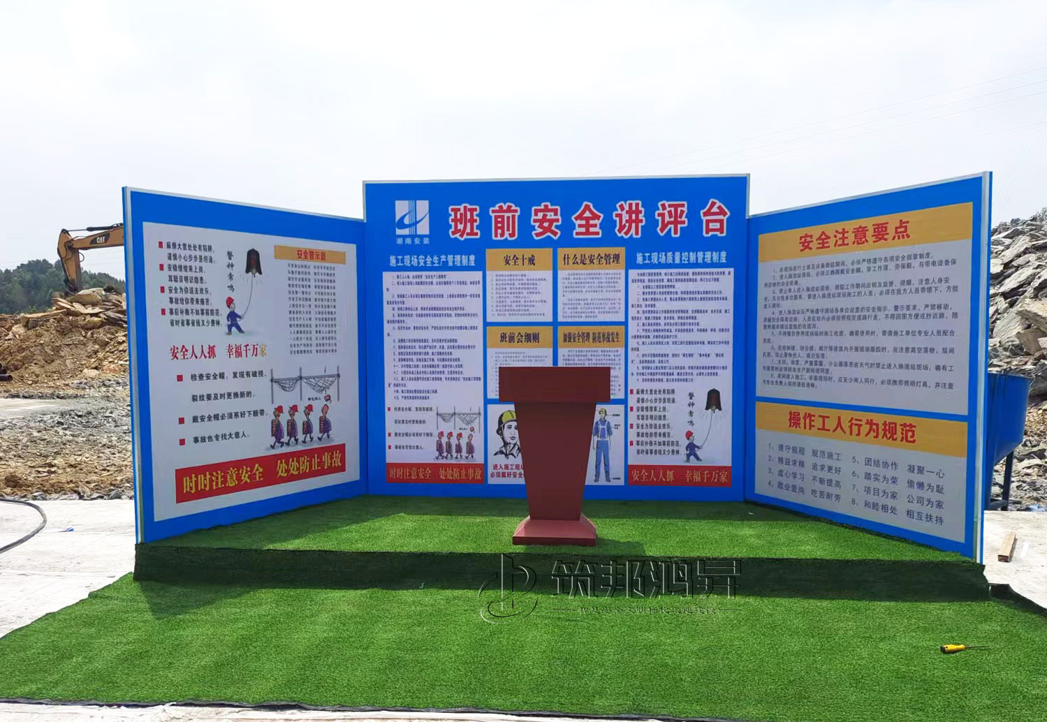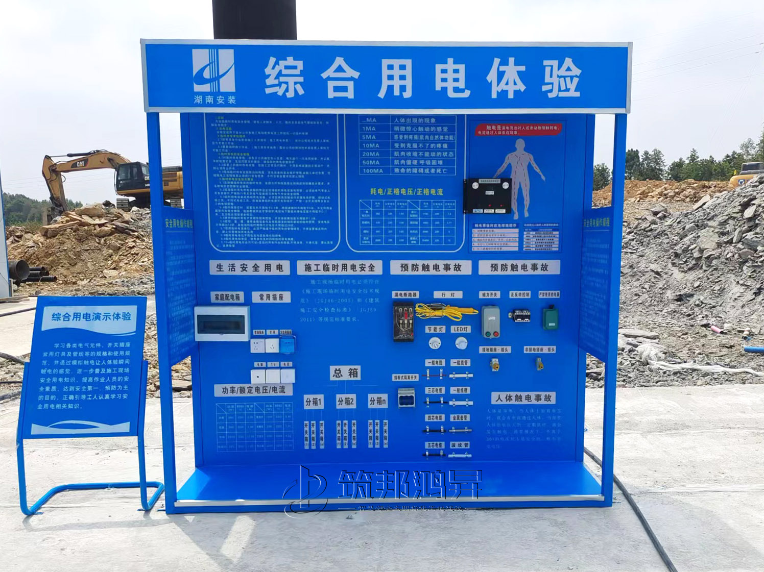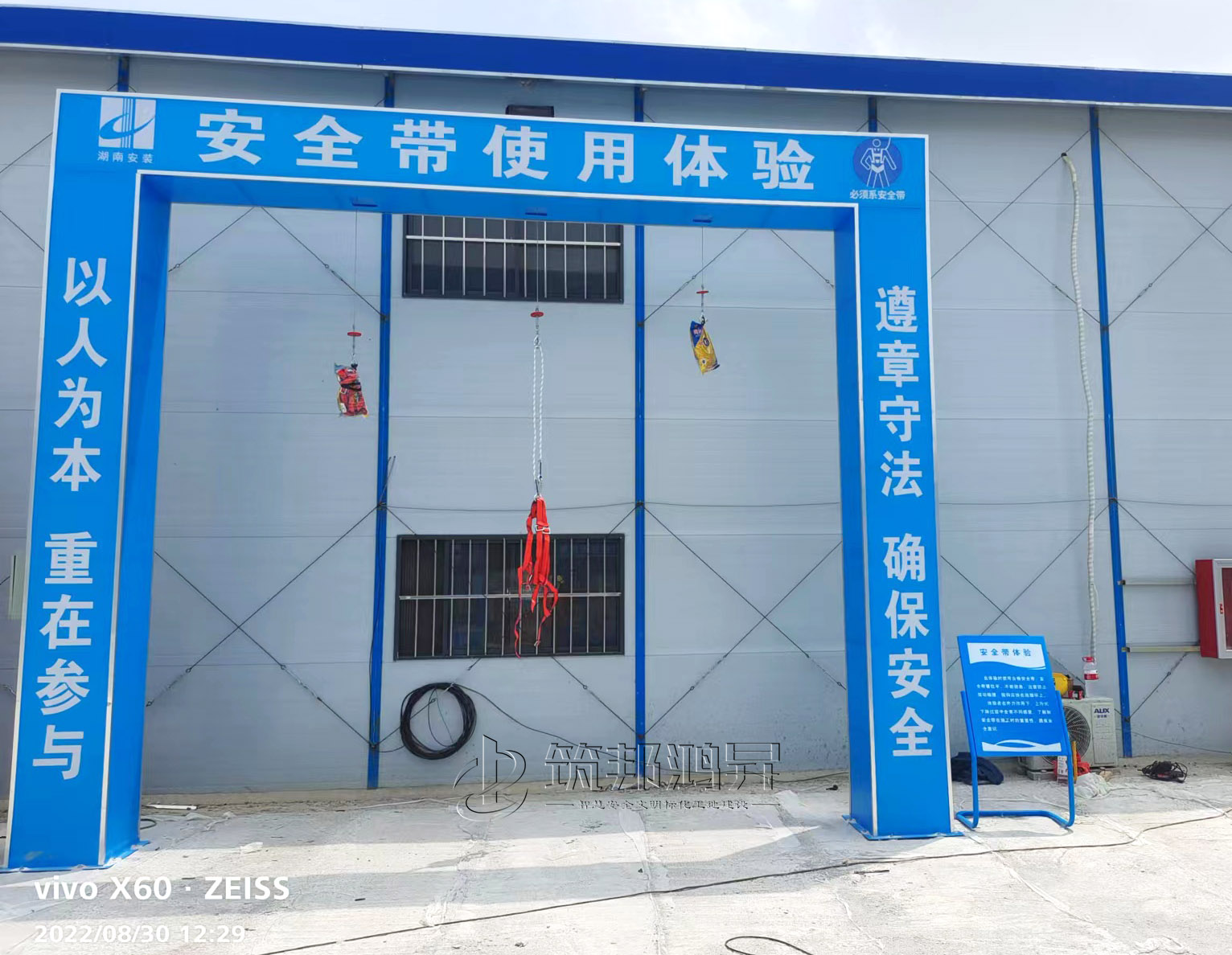 此次合作的安全教育培训体验区建设包括了综合用电体验、安全帽撞击体验、班前安全讲评台、平衡木体验、安全带使用体验、灭火器演示体验、洞口坠落体验等。标准款采用钢结构组装式设计,高温烤漆不易褪色,颜色鲜艳更美观,设计制作安装一站式服务。筑邦安排专车送货到工地,同时安排专业的安装团队从长沙来到邵阳工地现场,进行专业安装。