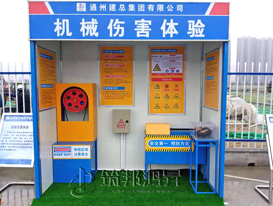 【筑邦鸿昇】安全体验馆内一般配置安全带使用体验、洞口坠落体验、消防器材演示体验、安全帽撞击体验、综合用电体验、现场急救体验、平衡木体验、钢丝绳使用体验、安全防护用品展示培训、垂直爬梯演示体验、钢丝绳演示体验、吊运体验、栏杆推倒体验、平衡桥/斜屋面行走体验、机械伤害体验、移动式平台倾倒、电焊机操作体验、重物 等搬运体验、墙体倾倒体验、人字梯体验等几十种体验设施。这些基本涵盖了建筑施工现场容易发生安全事故的危险源。筑邦鸿昇实体安全体验馆有常规款/钣金款/简易款三种款式。