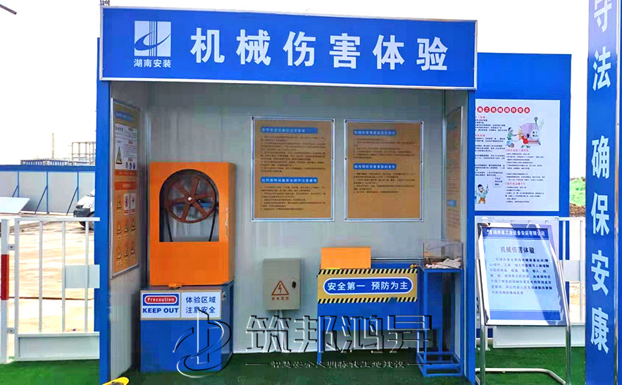 【筑邦鸿昇】实体安全体验馆-机械伤害体验(常规款)指机械设备运动(静止)部件、工具、加工件直接与人体接触引起的夹击、碰撞、剪切、卷入、绞、碾、割、刺等形式的伤害。此体验项目介绍了常见的机械伤害发生的原因及注意事项,并让作业人员直接体验违章操作所导致的事故后果。