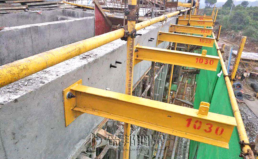 新型花篮悬挑型钢无需穿墙,无需在室内模板上开洞预埋,无需后期补洞,?;ち酥魈?,消除后期补洞引起的外墙渗水漏水,确保工程质量。