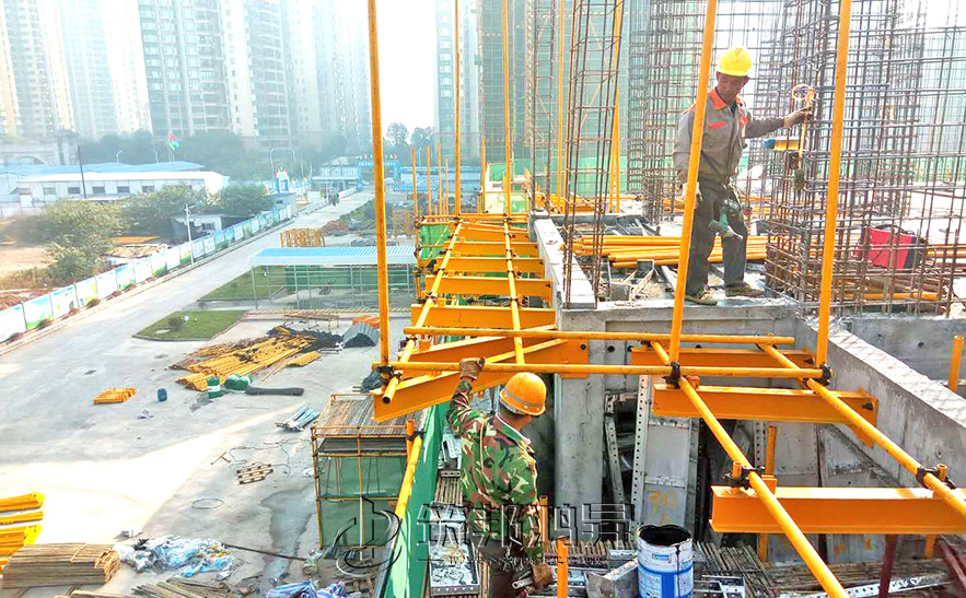 新型花篮悬挑脚手架无需穿墙,无需室内开洞预埋,建筑主体内外更加干净整齐,美观大方;配件可以重复利用,不产生建筑垃圾,符合绿色文明施工。